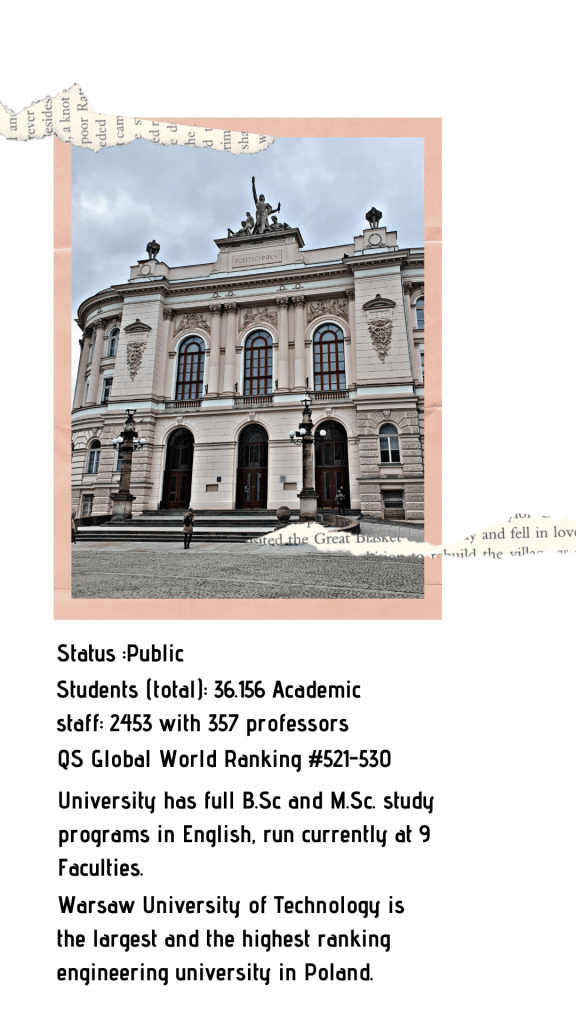 Size Varsova’da yuksek lisans arayisim sonucu gidip gezdigim bir kac iyi universiteden bahsetmek istiyorum. Ilki muhendislik cikisli oldugum icin gezdigim Varsova Teknik Universitesi.