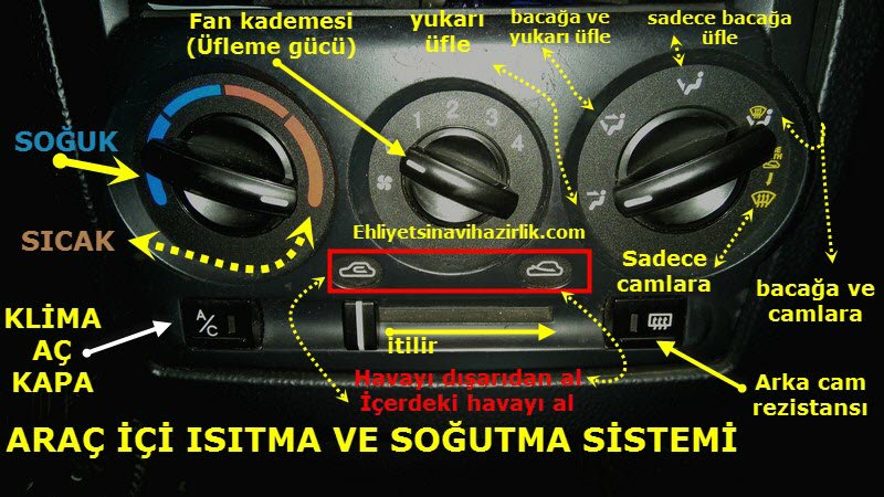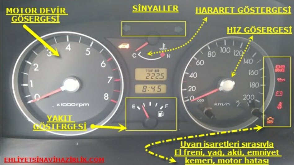Araç içi tanıma ve direksiyon sınavında sorulacak sorular