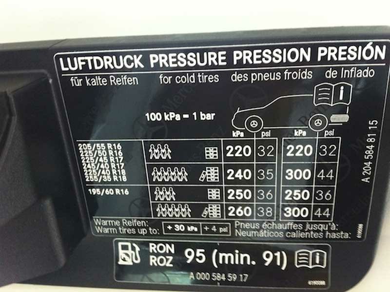 - Kimi araçlarda ön kapının iç kısmında hava basınç değerleri yazmaktadır.