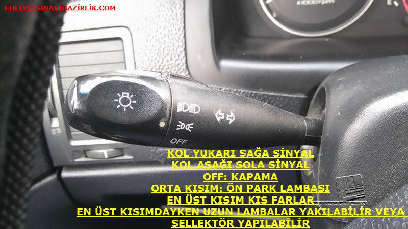 - 10- Direksiyon kumandalarını (Uzun/kısa far, sinyal kolu ve silecek kolu) bilmelisin