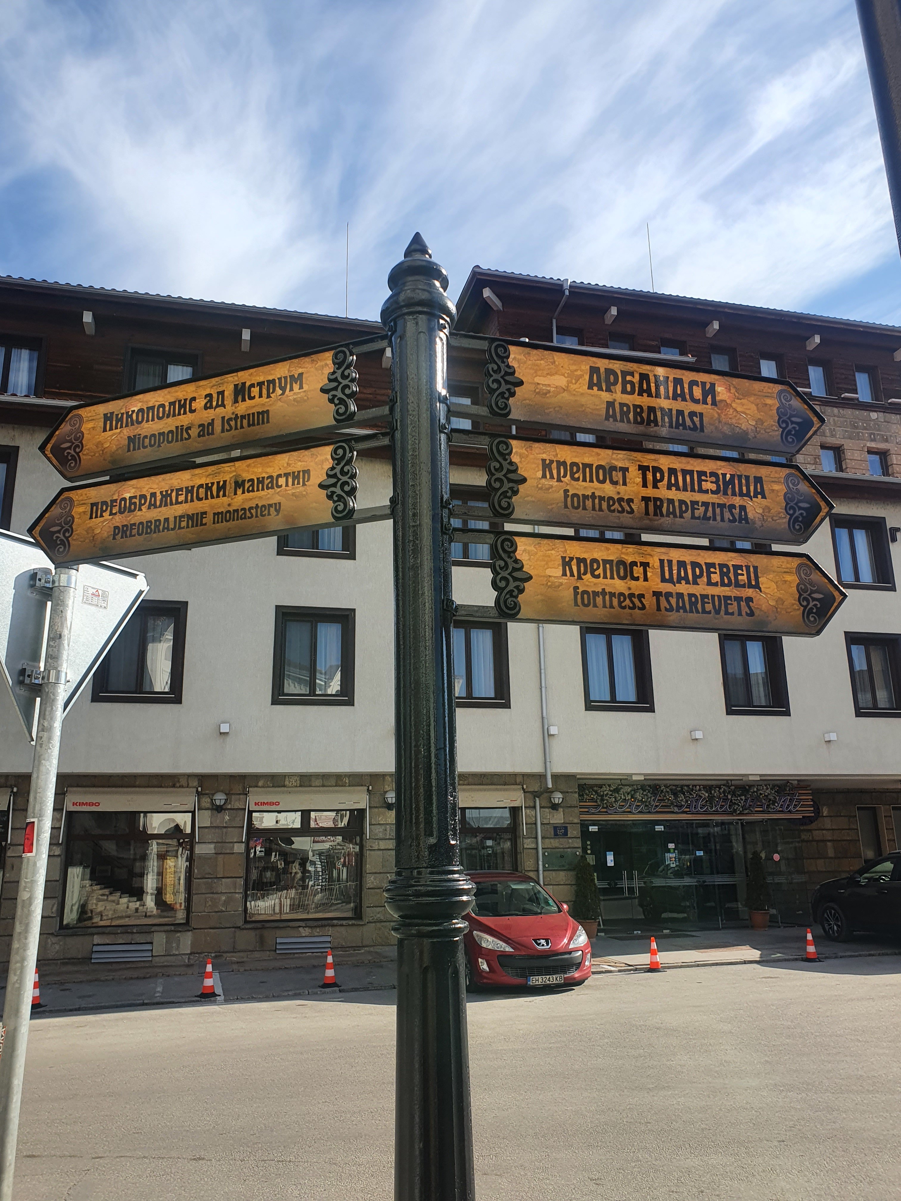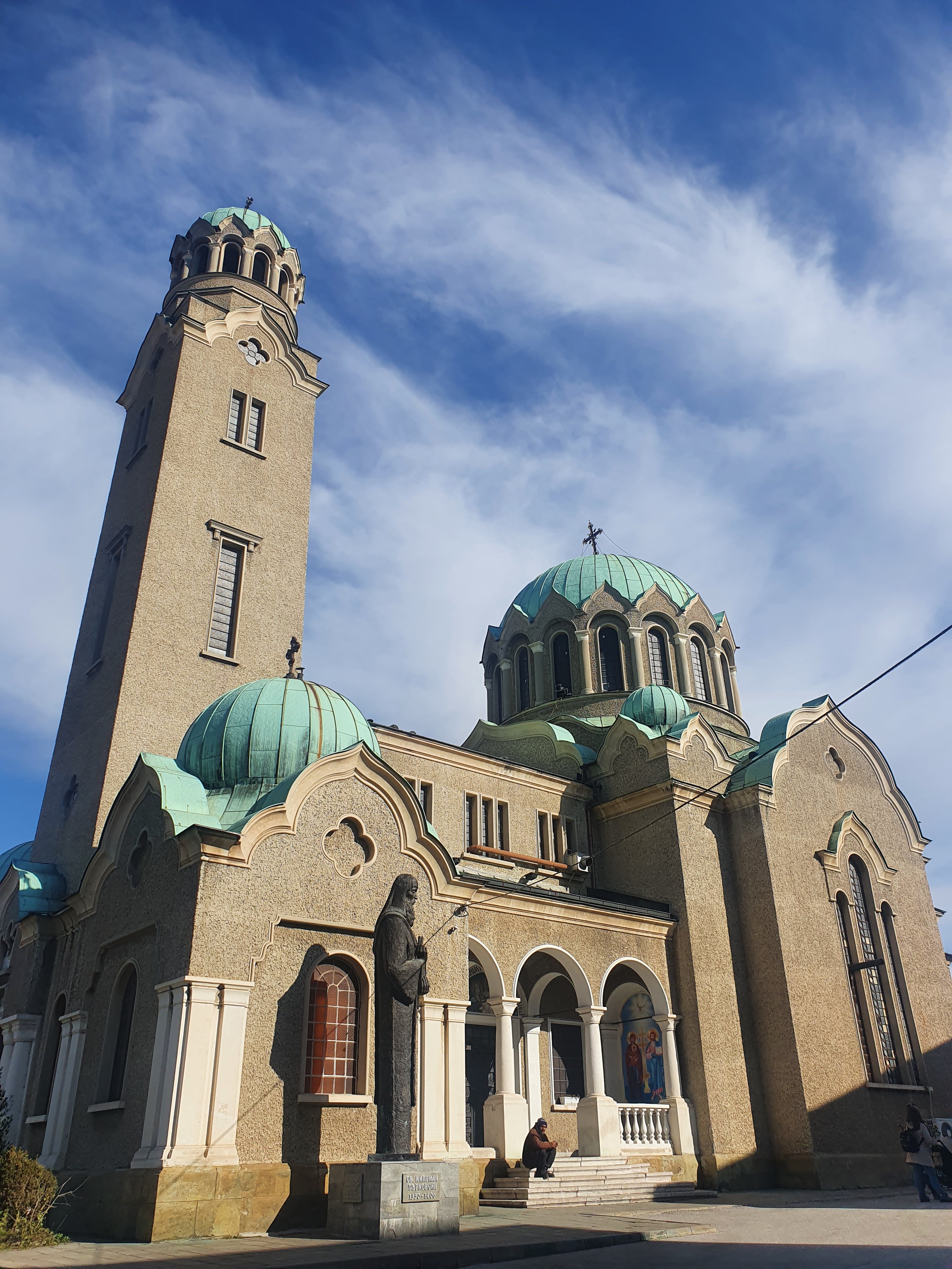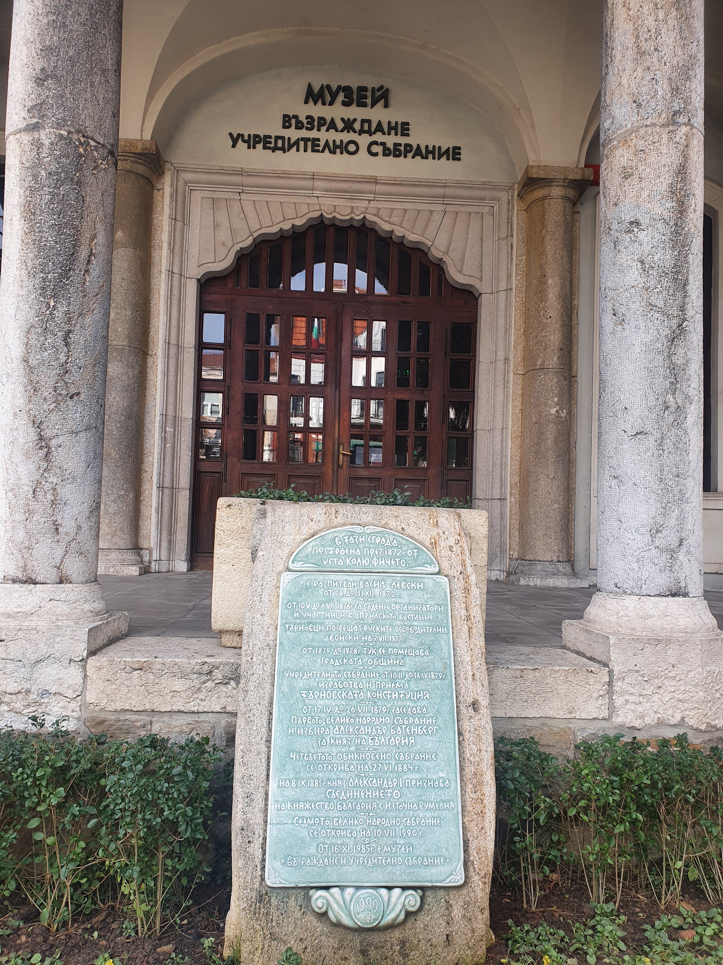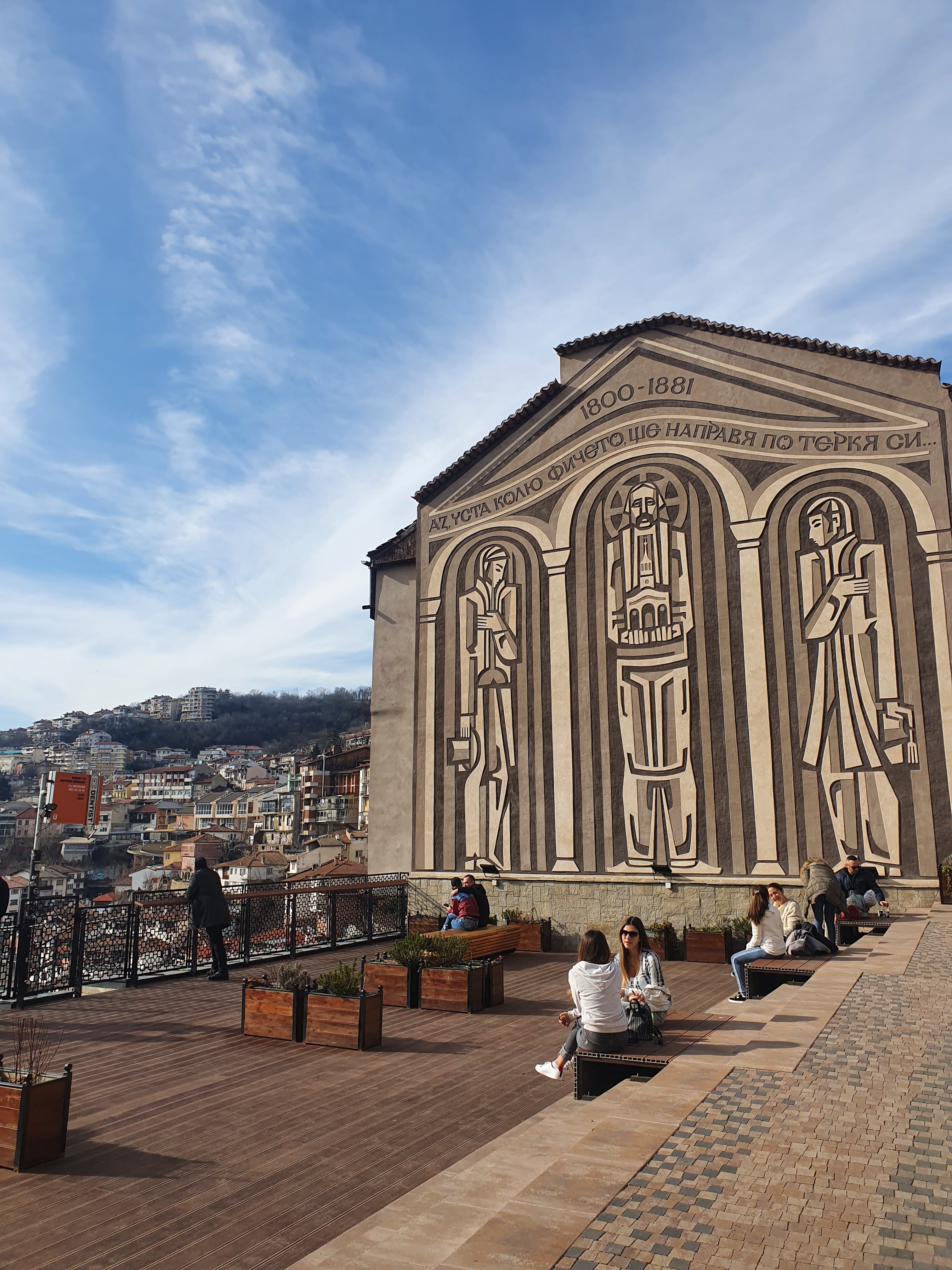 The Patriarchal Church “Ascension of Christ”Nowadays the temple is with a museum statute and is not using as a church. The walls are not painted according to the canon. Modernist murals in the Church of the Ascension. Inside the church you can see this gift machine it works with 2 leva. You have three option for your medallion face after you choose one, put 2 leva inside the place and turn the handle as much as you can . Then you gift is ready ! I dont know why I love this touristical stuff it is kinda felts you like you have a connection with that place because you are preparing your own present . This idea is very touristical ! Ivo put it for me and tell me the turn the handle and I love it. When you go out from the church you can see two telescope for check the view closely we already saw it generally so we did not do it.You can see upon the building which year they made it and they will survive .In turkish and bulgarian they have one common word to i have found out it is “dükkan”. In the road of Samovodska charshya you can see two places which works to watch to scenery when you watch it you can eat something bar tables in border on the fences. We enjoyed the view like 10 minutes here we ate waffles but bulgarian style wafer.We were starving so found this place , I am in Bulgaria but still eating doner . You can find as a street food pizza slices or some banitsa . We decided to eat Albox classic from Aladdin doner . Neighborhood prefers this places so we decided to eat from here . After we took away our food we go to Monument to the Assen Dynasty . “St. Cyril and St. Methodius” University of Veliko Tarnovo