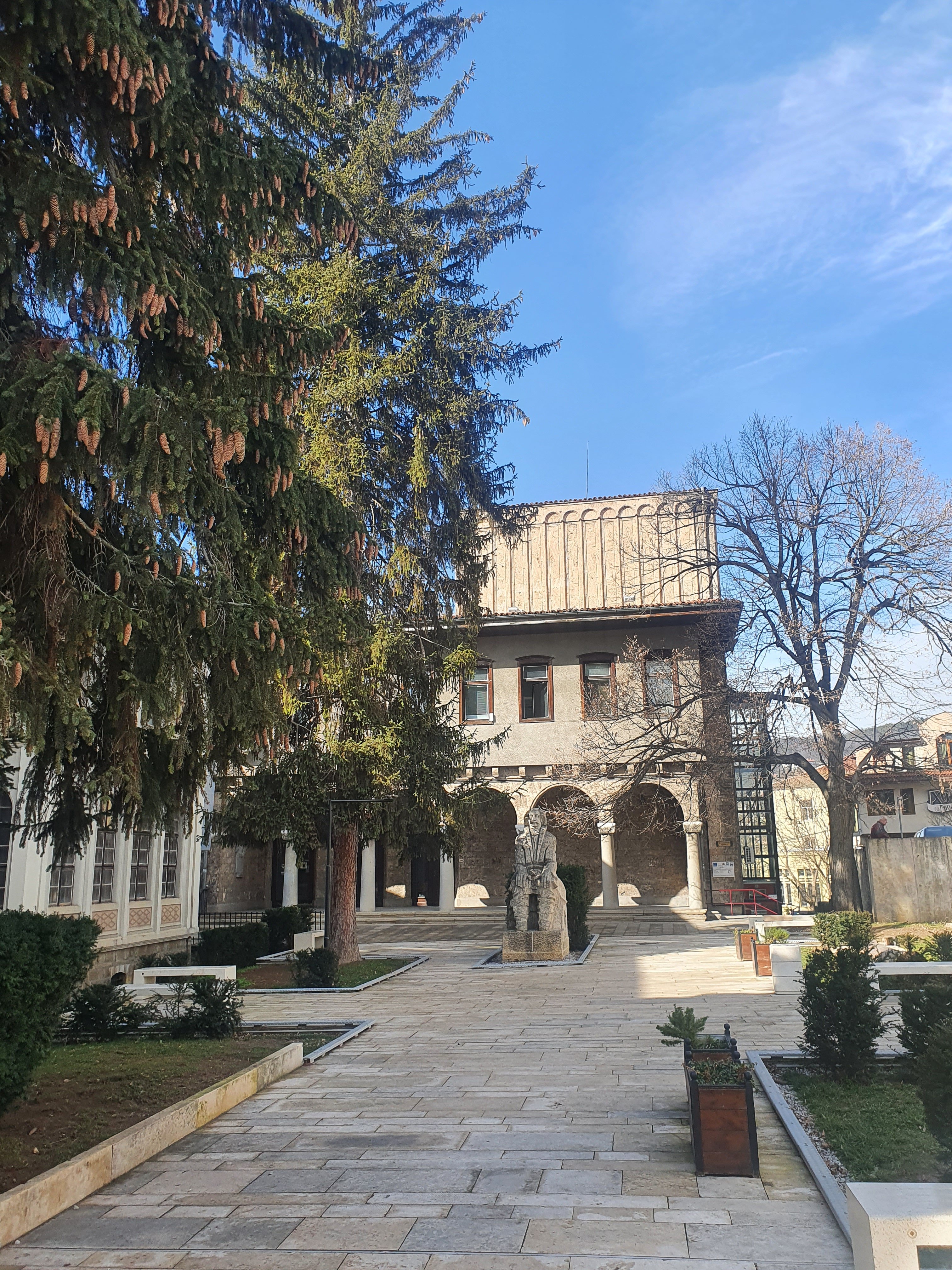 I took this cat wood carving to 20 leva. I am so into this kind of wood or stone shaping , paintings.We walked and bought some souvenirs now we are going Tsarevets which is the best places to see in Veliko.You can see this bronze “cezve” and necklace ! Yeah bulgarian people use cezve too ! And they are using the same word in bulgarian , cezve.Arbanasi is a little village is far from 1 hour to veliko its kinda picturesque place but we are not gonna go there .We also bought some shot glasses for rakia ! This is the glasses we bought from veliko !This church is neglected so people collecting money for maintenance. In front of the church there are couple tombs.Ivo try to understand for to tell me what is writing in the tombsRegional Public Library Petko Slaveykov ,today this is the biggest library in Central North Bulgaria which offers services combining the traditions and the modern technologies.Museum “Revival and Constituent Assembly”, in the building of the old Turkish konak (police office in the Ottoman Empire). The Nativity of the Theotokos Cathedral, this cathedral architecture looks like Alexander nevsky and Sveta Nedelya .