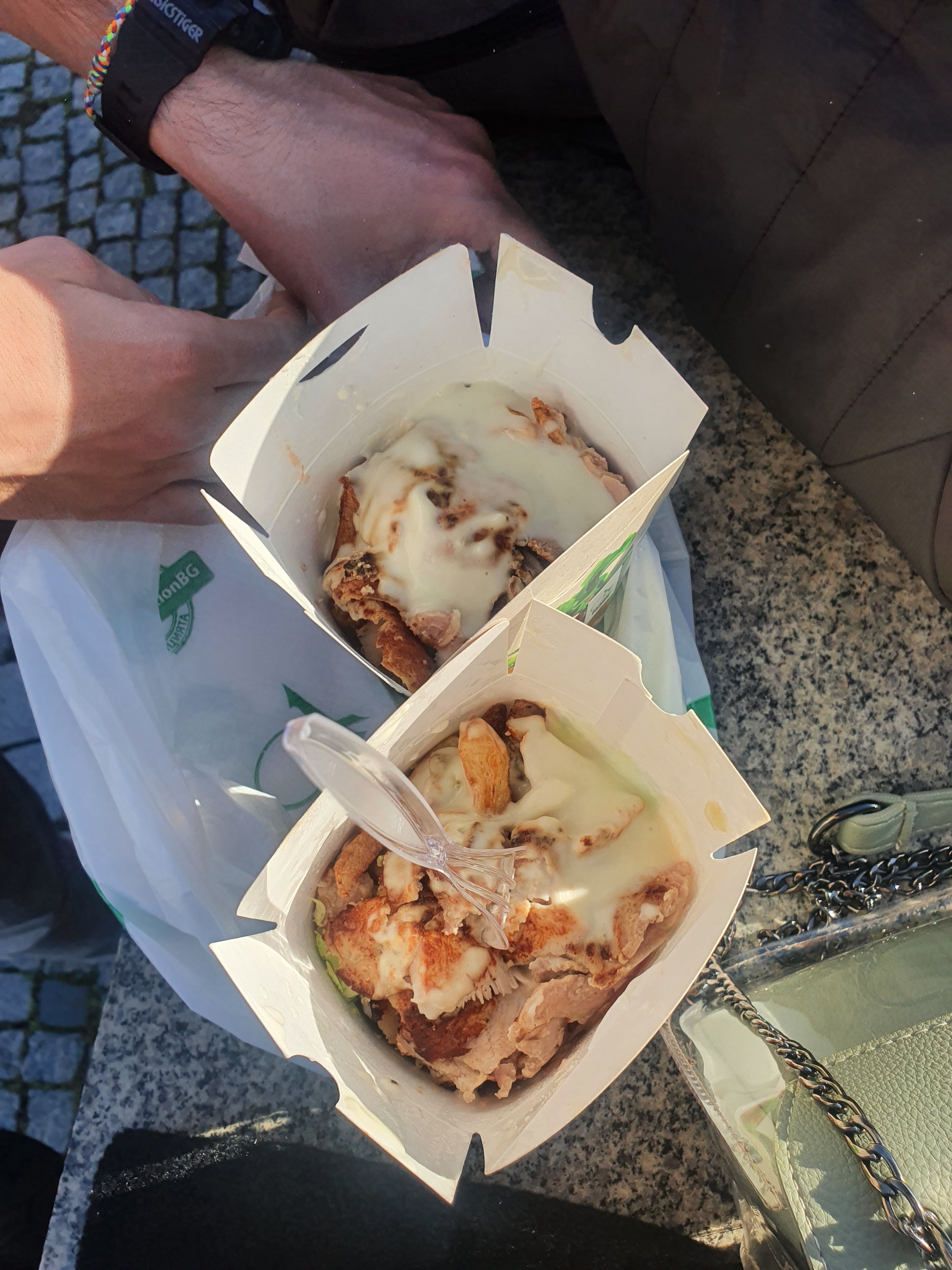 We stopped in a gas station and bought two Cappucino and olive banitsa.