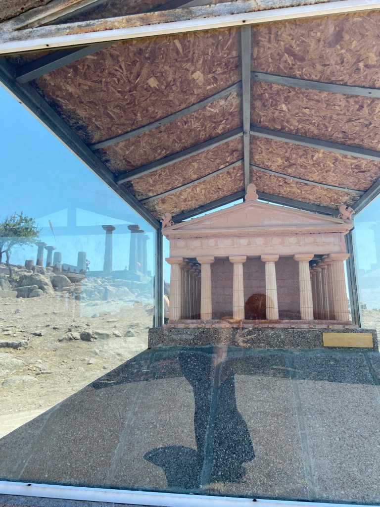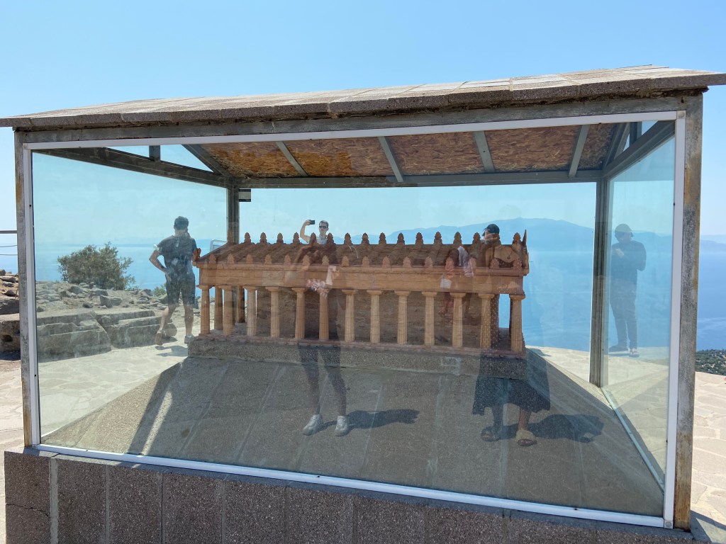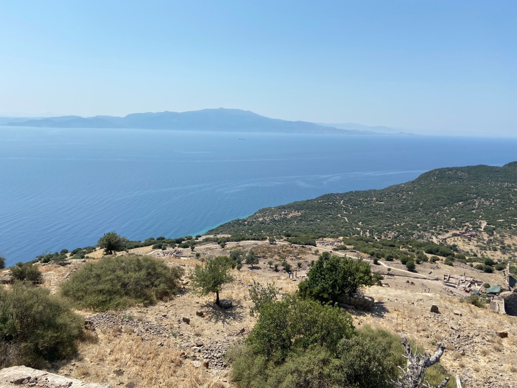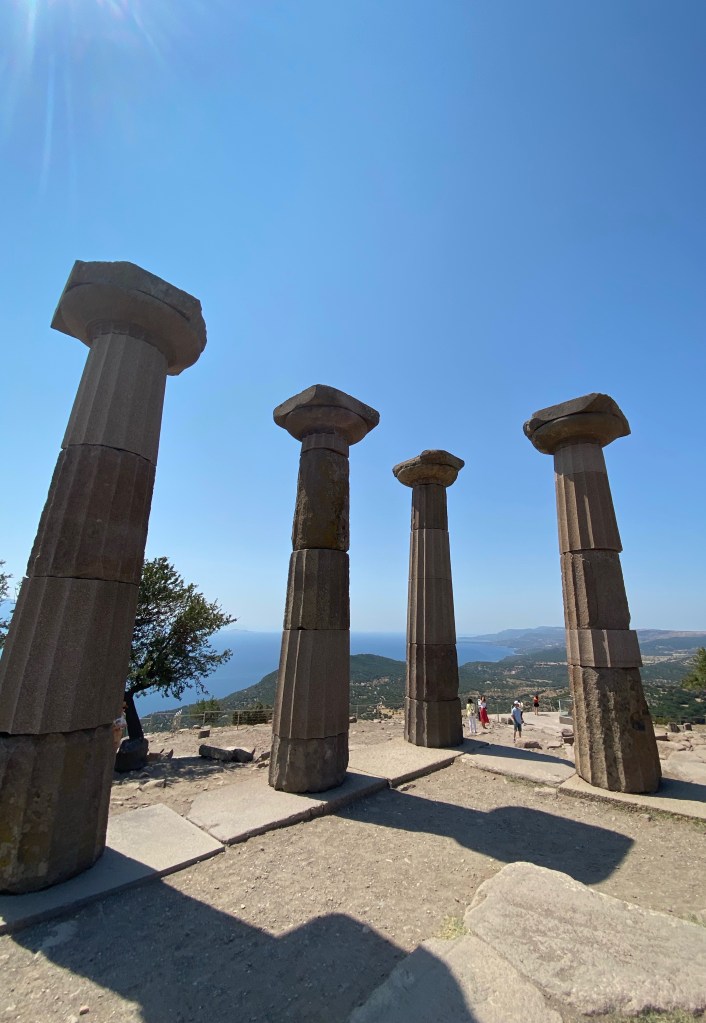 Athena Tapınağı antik kentin en yüksek noktası buradan Antik Tiyatroya inebilirsiniz bize yukarı çıkması zor geldiğinden oraya da inemedik.