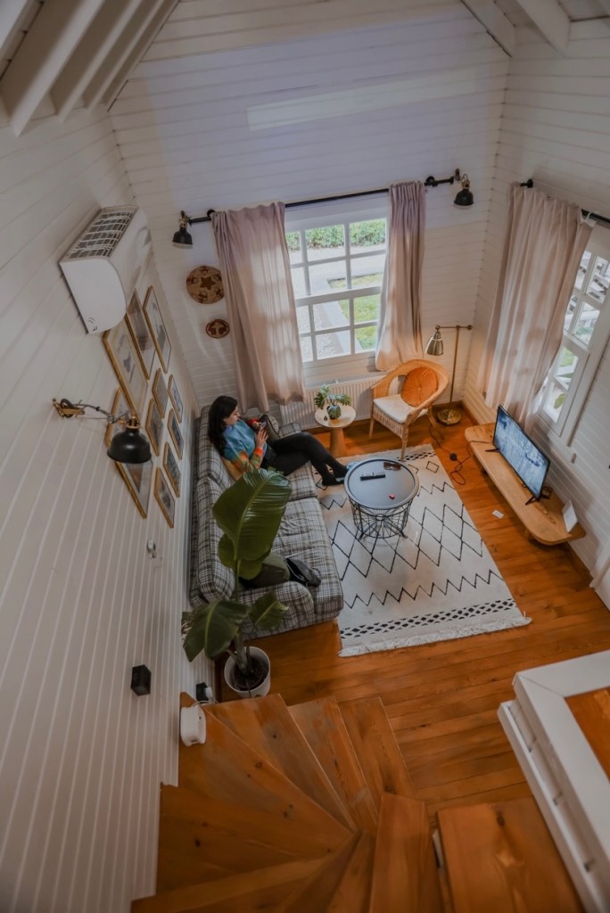 Türkiye’nin ilk Tiny house konseptli oteli, evlerin içi aydınlık, minimal ve tüm dokunuşlar aksesur olsun, mimarisi, peyjazı olsun ince düşünülmüş, Tiny House Country‘de kaldık veranda, sıcak, havuz , projeksiyonu ve kendine ait etrafı yeşilliklerle örtülü bahçesi vardı. 4-5 konseptte evi var, The Box House ve Boheme House da deneyeceklerimiz arasında aklımızdalar. Biz Tiny için geceliği üç bin lira verdik, The Box House ise iki bin beş yüz liraydı.