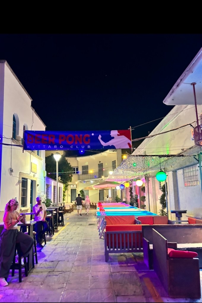 - Beer Pong Kyttaro Club, ilk kez bir çok beer pong masasının açık alanda olduğu bir yer gördük, arkadaş grubuyla geldiyseniz kesinlikle gidilmeli, 2 Lt bira ve beer pong masası için 35€ veriyorsunuz, kalabalık gruplar için ideal