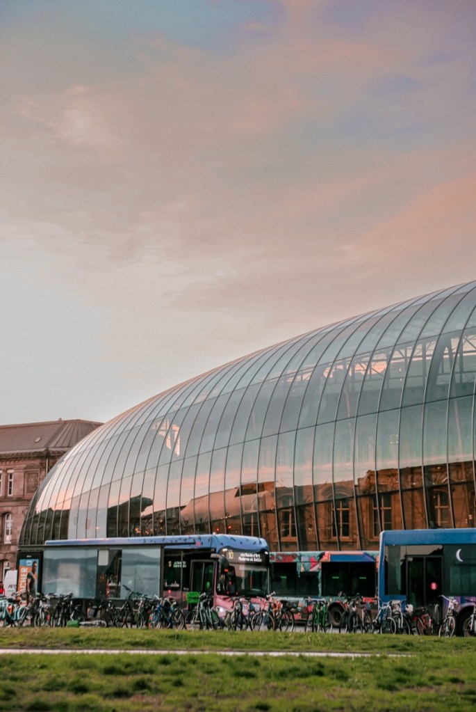 Strasbourg-Ville istasyonunda indiğinizde 19.yy yapımı olan tarihi bina üzerine giydirilmiş modern bir cam cephe göreceksiniz biz mimariye bayıldık.
